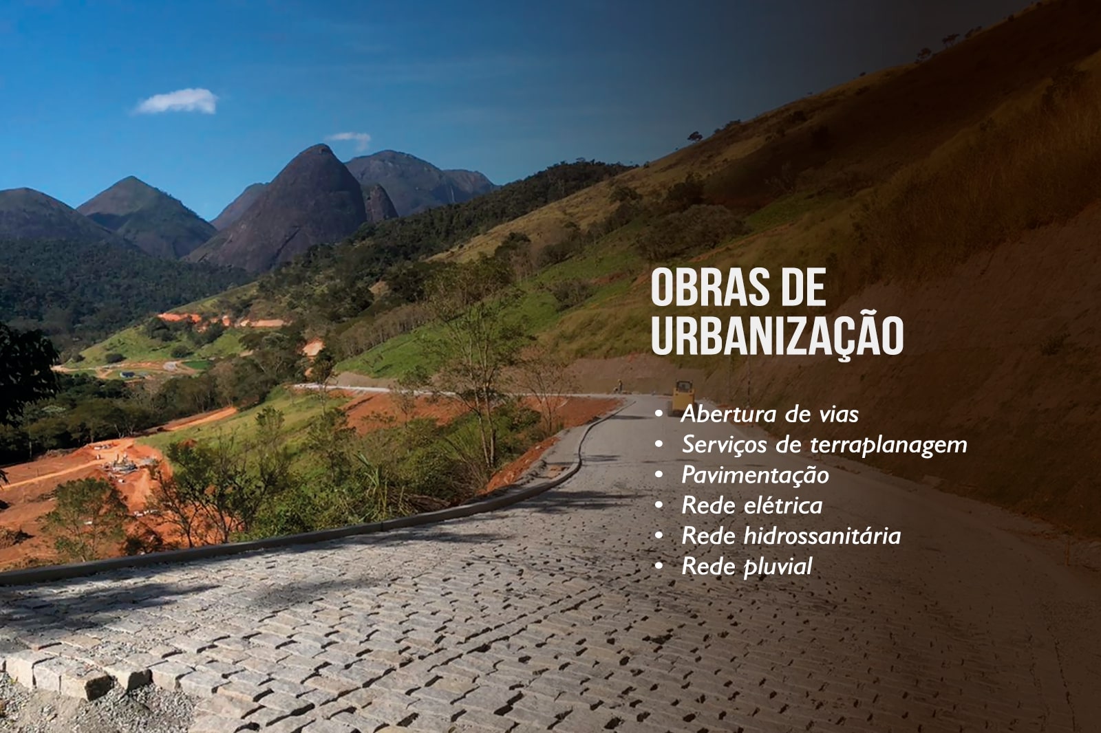 serviços de implantação de redes de drenagem, água e esgoto, movimentação de terra, pavimentação, rede elétrica e paisagismo.